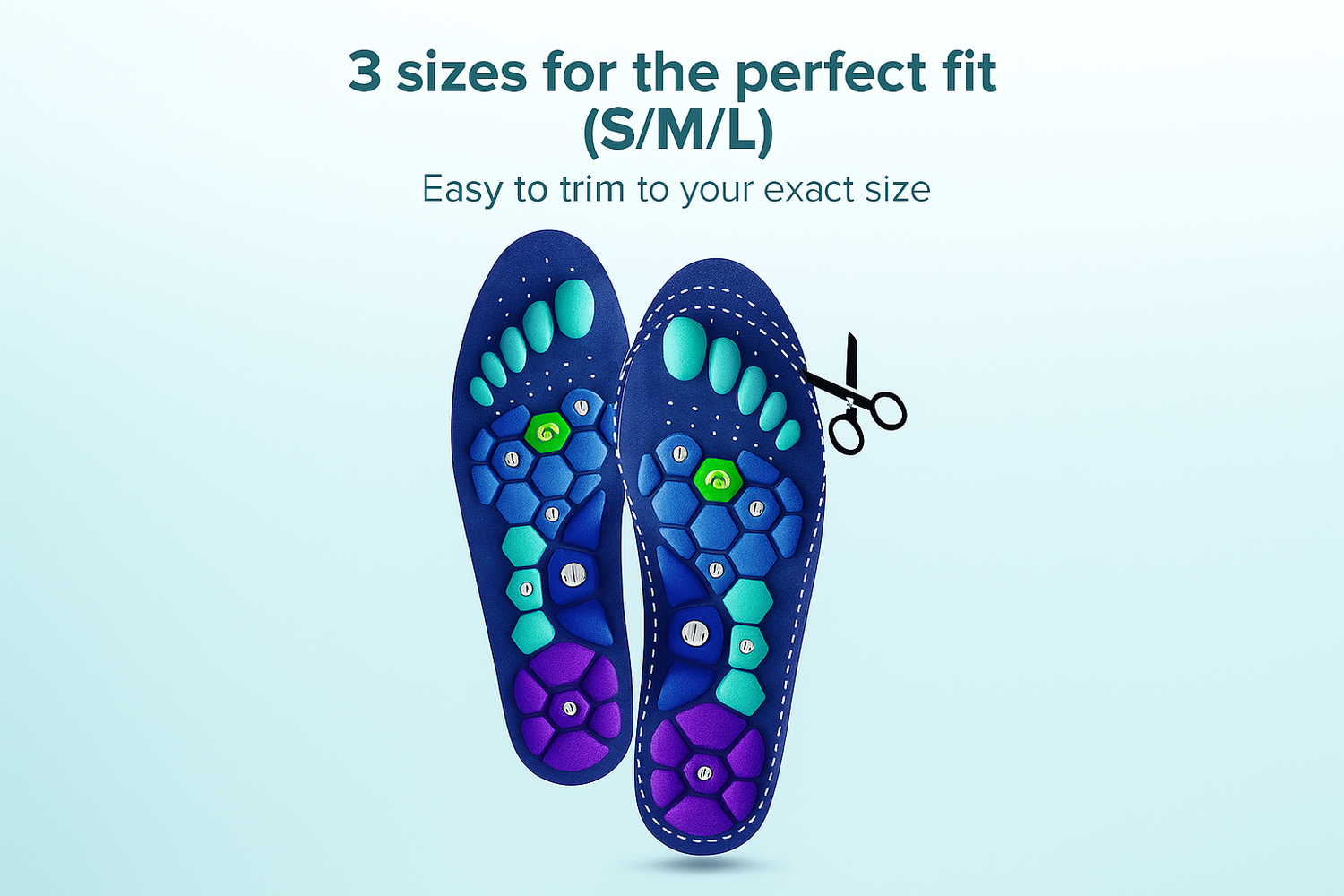 Say goodbye to aching, cold, and tired feet with the power of magnetic therapy and targeted acupressure. Each MagniSole insole is designed to cradle your arch, stimulate nerve recovery, and keep moisture at bay for all-day comfort.